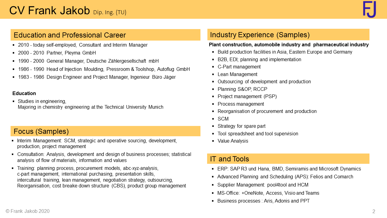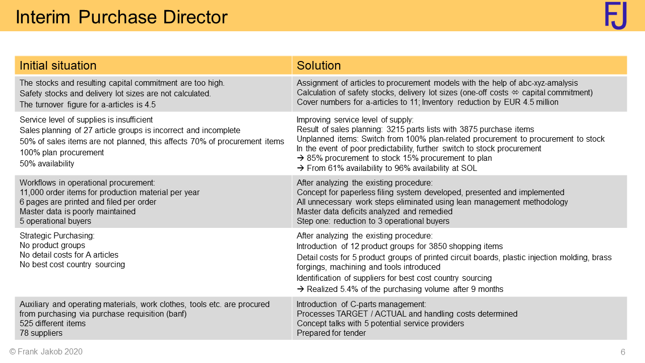 ”Frank Jakob has managed to nearly half our costs for import/export freights in his role as interim purchase